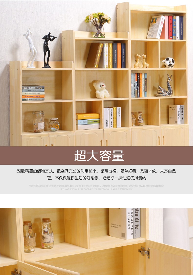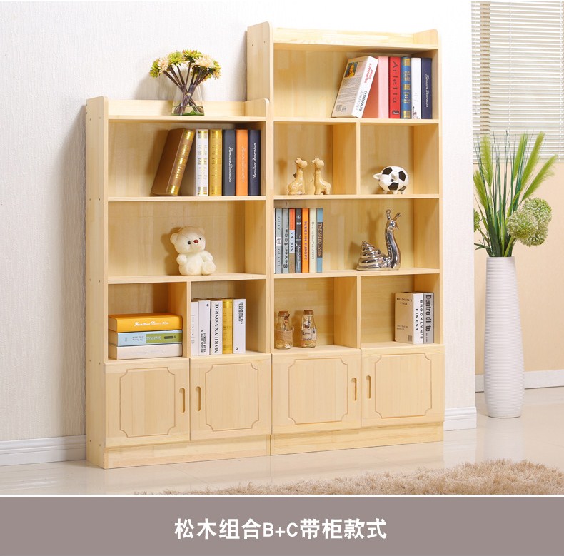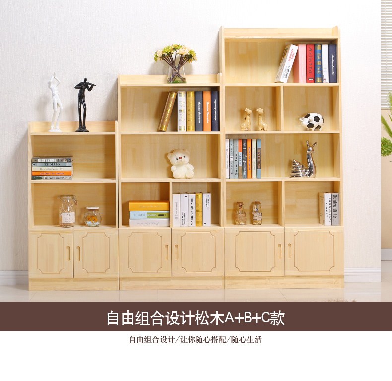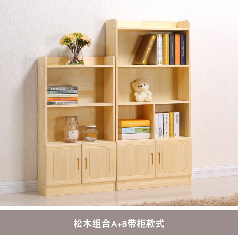 实木书柜带门儿童书橱书架简易自由组合储物置物松木柜子松木A款