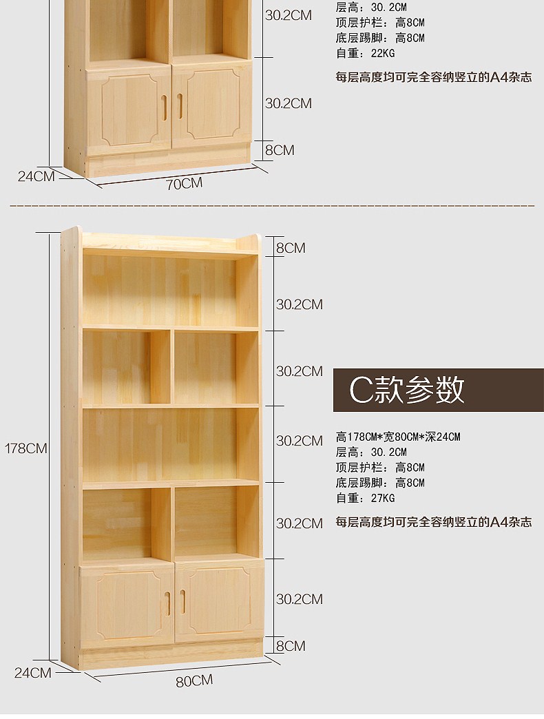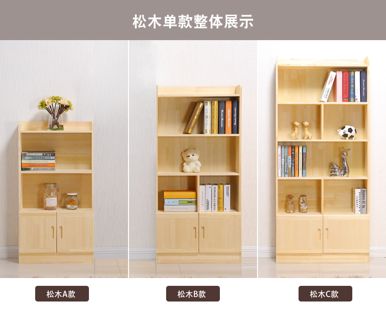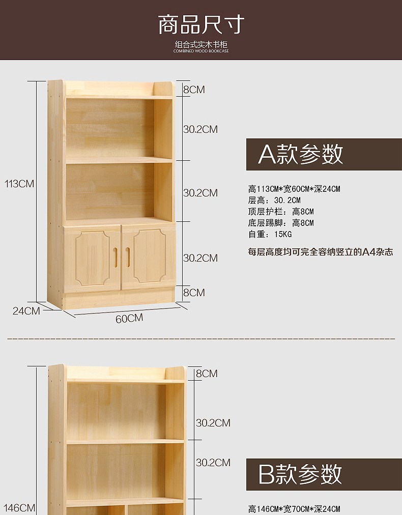 商品名称:实木书柜带门儿童书橱书架简易自由组合储物置物松木柜子松木A款