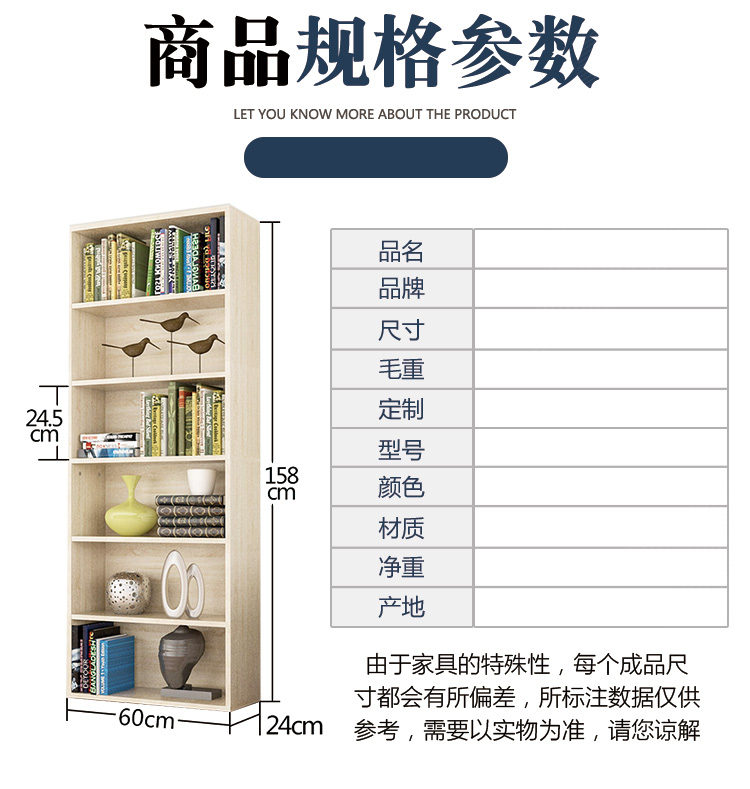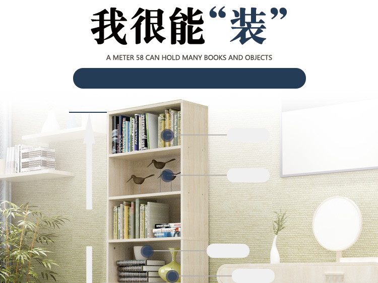 商品名称:沃变 书柜书架 书柜书架置物架文件柜六层1.58米储物收纳柜子橡