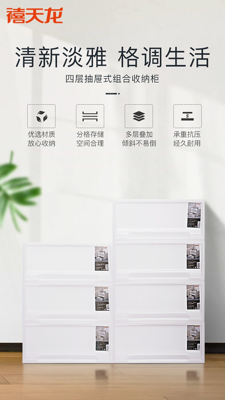 商品名称:禧天龙Citylong4层可叠加组合收纳柜环保塑料储物柜典雅白抽屉式