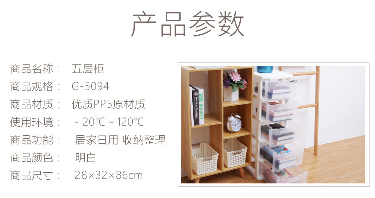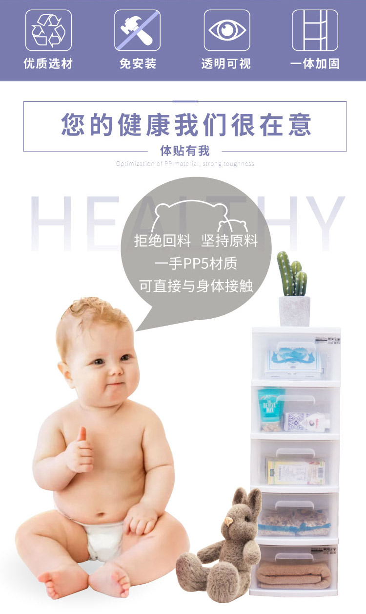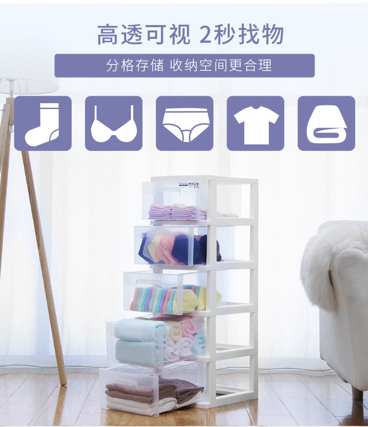 商品名称:禧天龙Citylong5层高透可视收纳柜免装一体加固衣柜环保塑料储物
