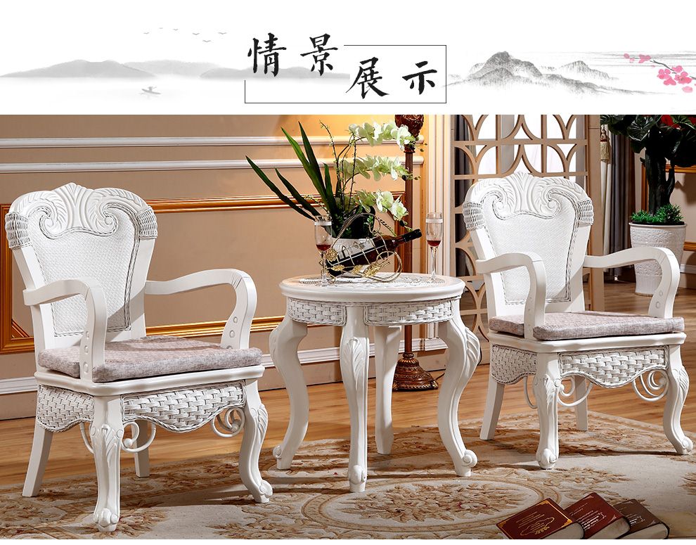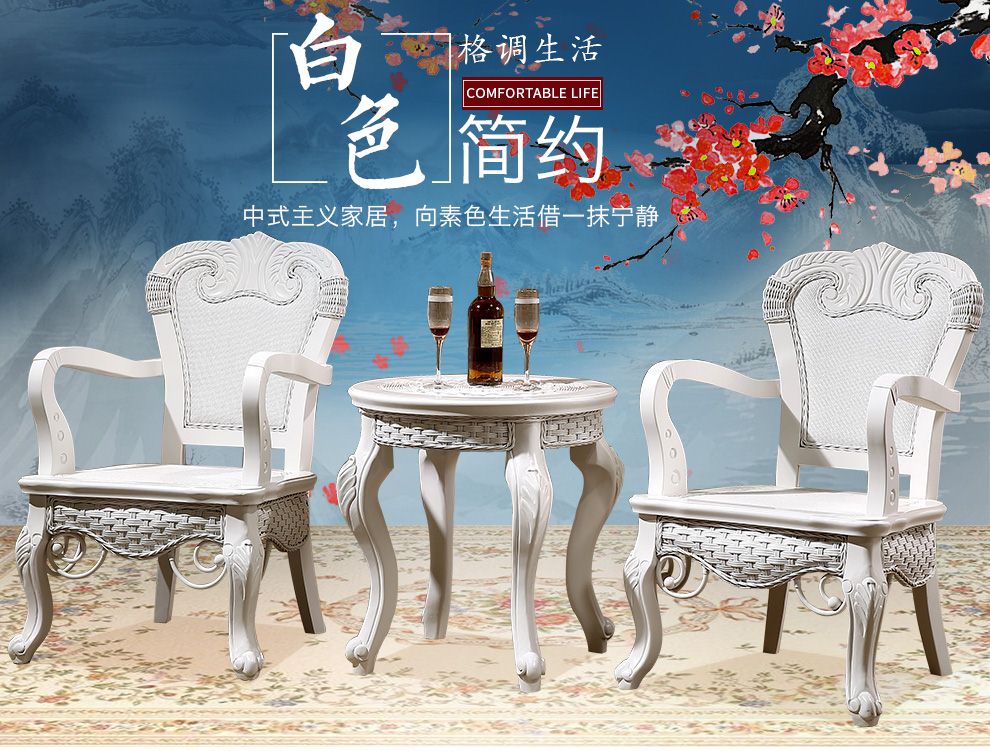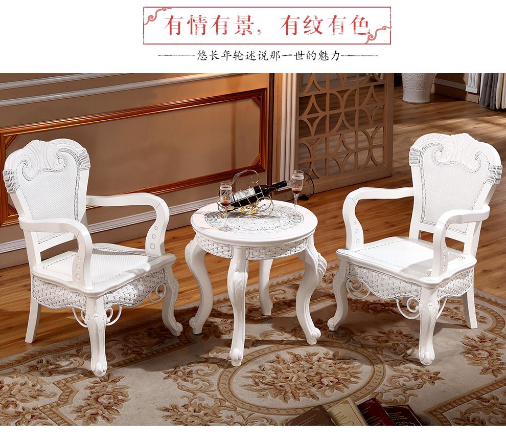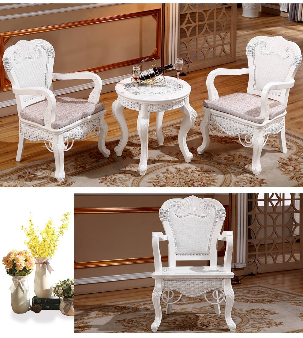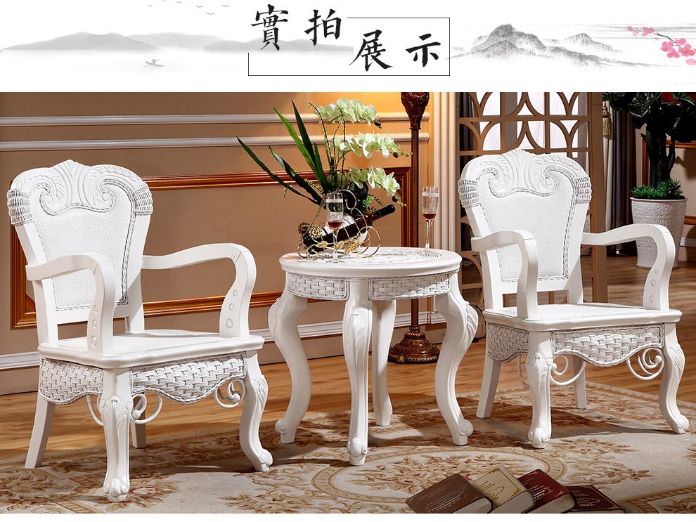 商品名称:茂利达 阳台真藤编桌椅组合白色 藤艺休闲藤椅藤条椅子茶几三件