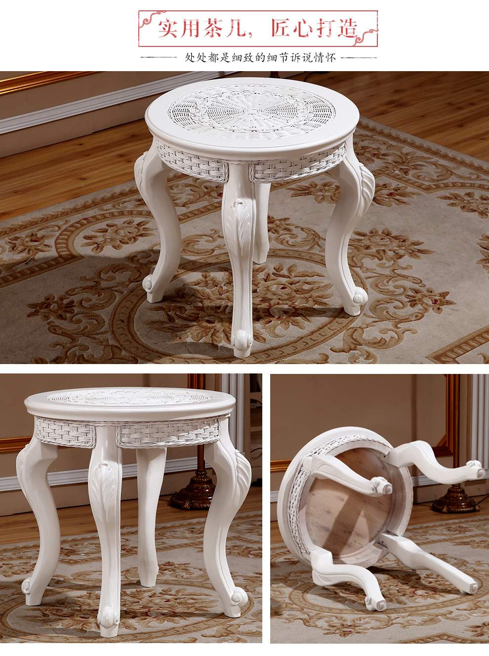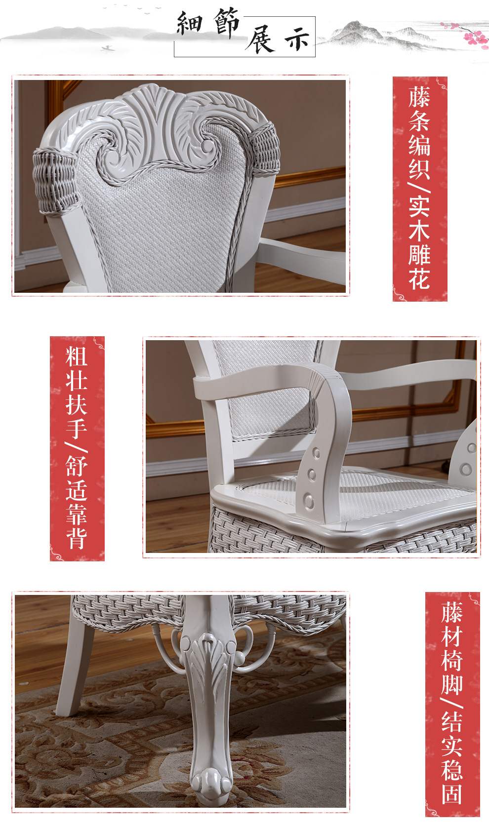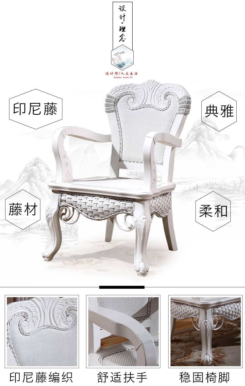 商品名称:茂利达 阳台真藤编桌椅组合白色 藤艺休闲藤椅藤条椅子茶几三件