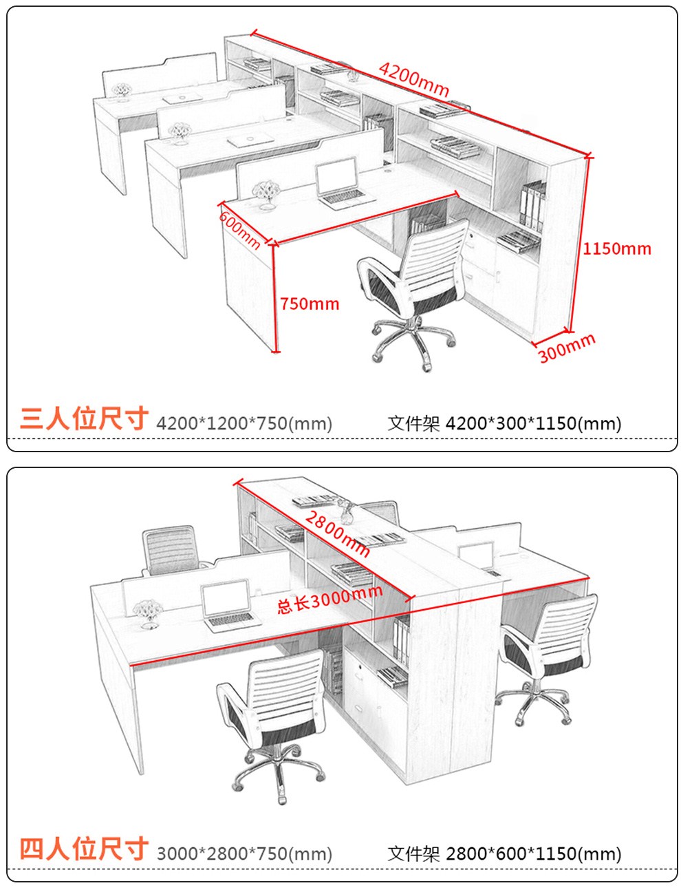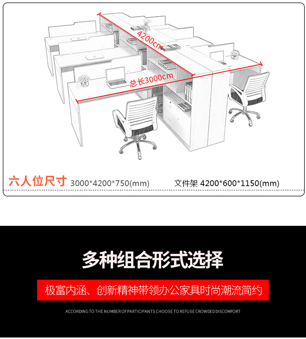 世纪柏源办公家具简约现代职员桌2/4/6员工位财务桌四人工作卡位
