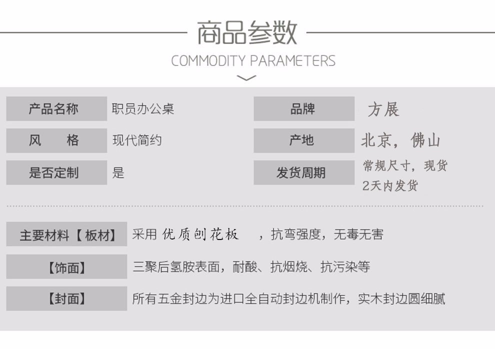 商品名称:方展办公家具办公桌椅组合现代简约职员办公桌电脑桌6人屏风工位