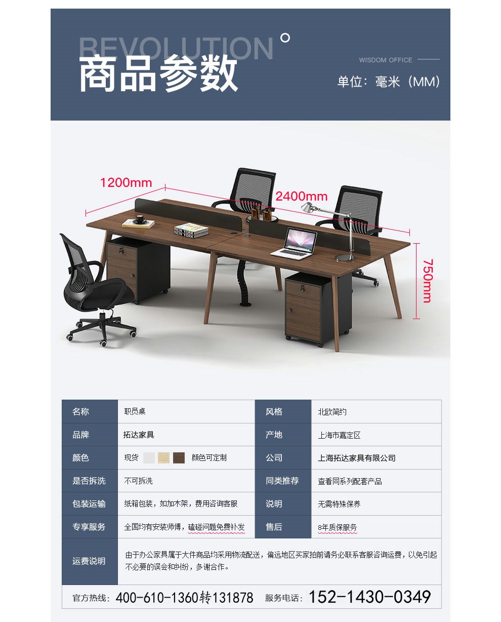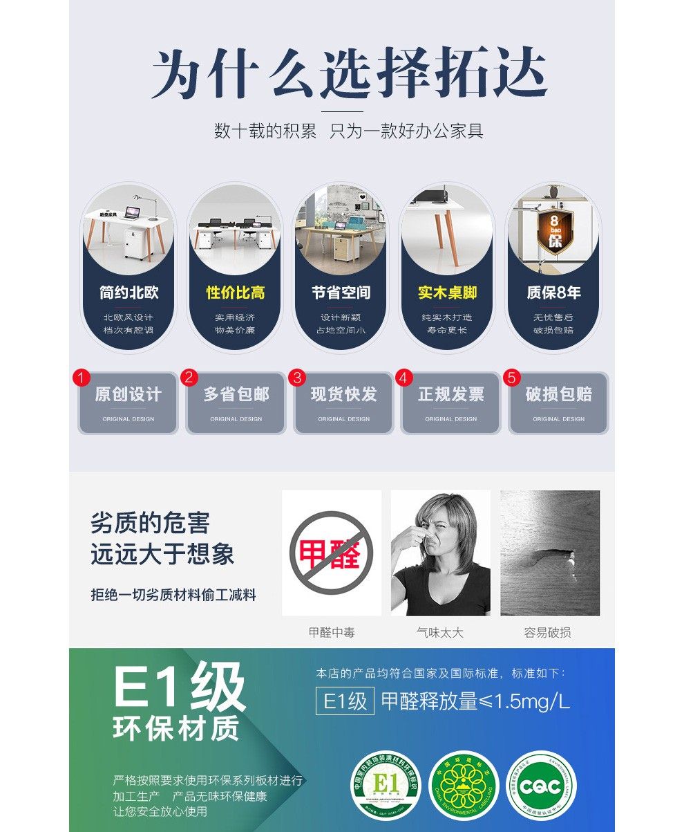 商品名称:拓达(TUODA)办公家具办公桌椅组合简约现代职员办公桌组合电脑