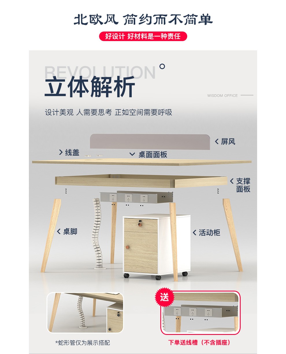 时仁办公家具职员办公桌椅组合屏风工作位员工电脑办公桌隔断四人