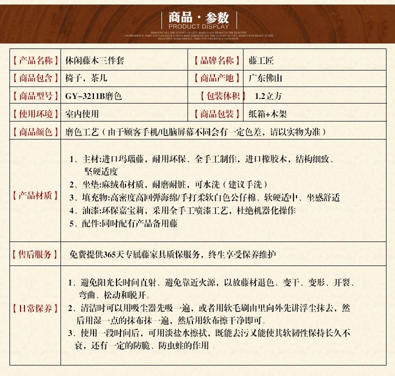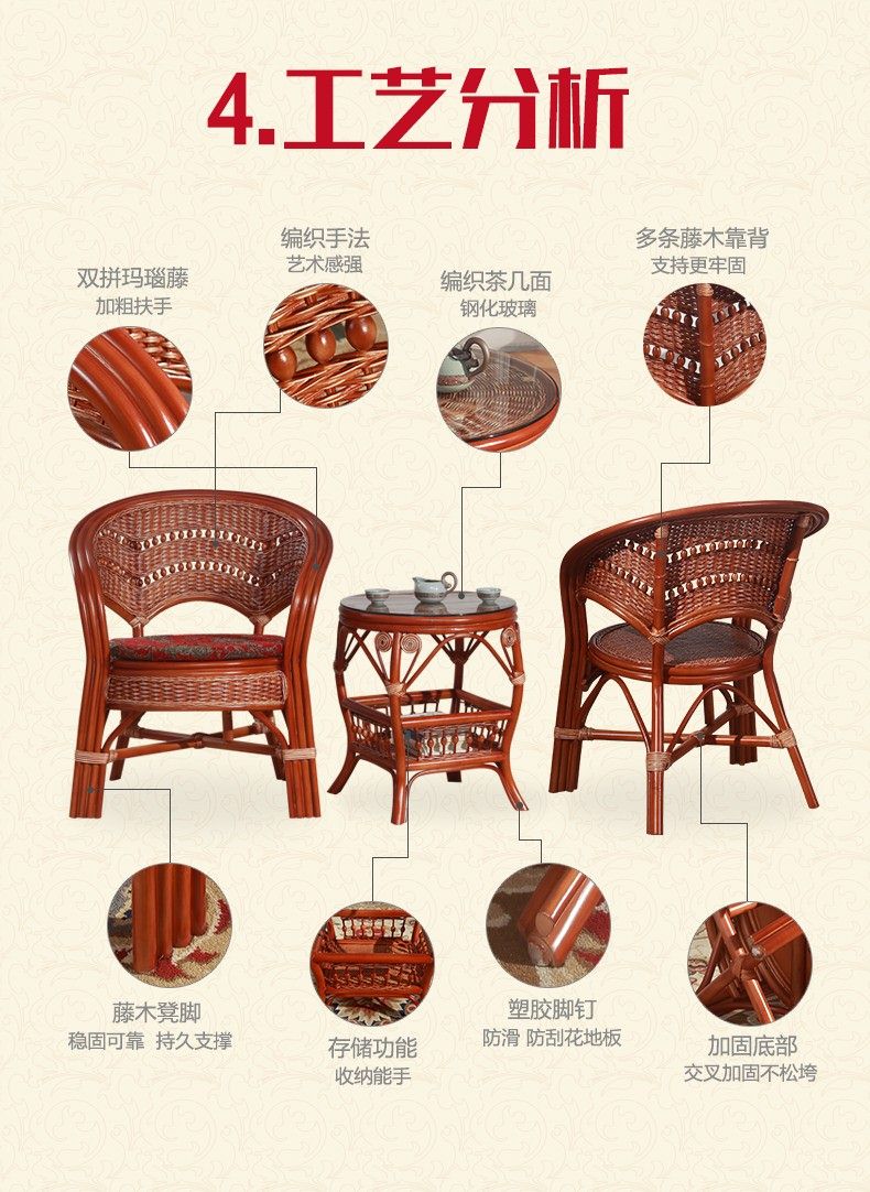 商品名称:藤工匠天然藤椅三件套阳台休闲桌椅组合小茶几椅子靠背椅腾椅圈