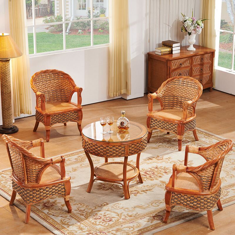 奥莱嘉藤椅三件套阳台桌椅组合藤制休闲沙发椅套装老人靠背椅子