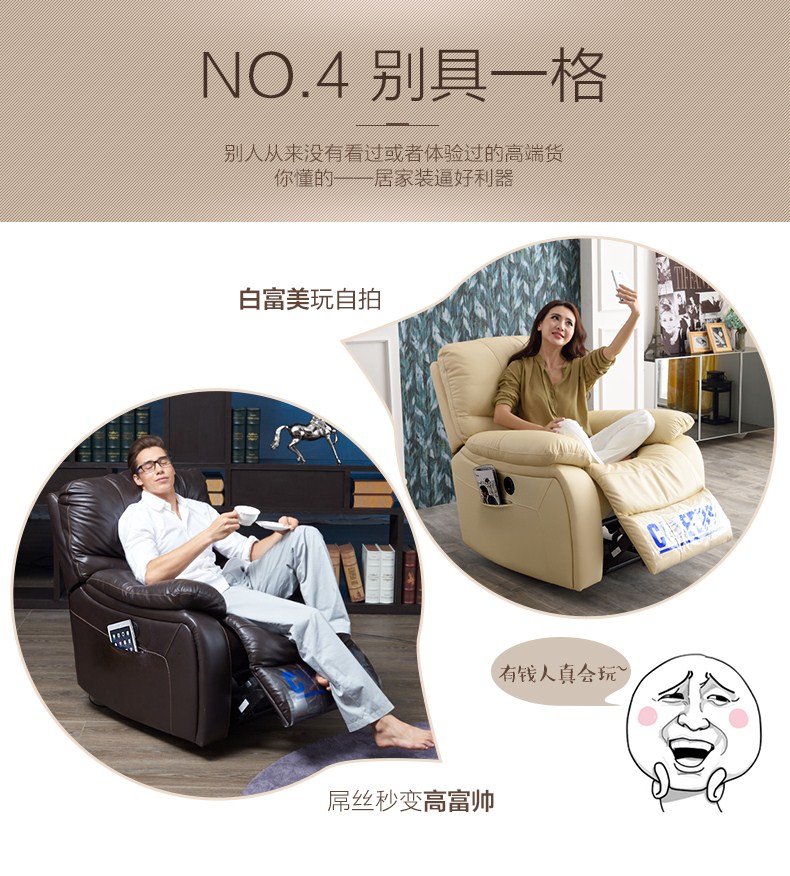 商品名称:芝华仕头等舱沙发 功能单椅 现代简约进口头层牛皮真皮艺懒人沙