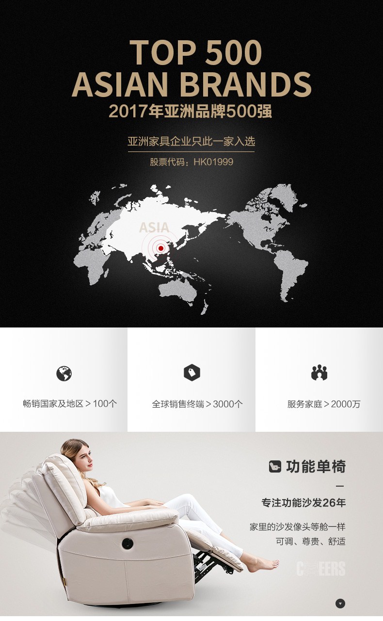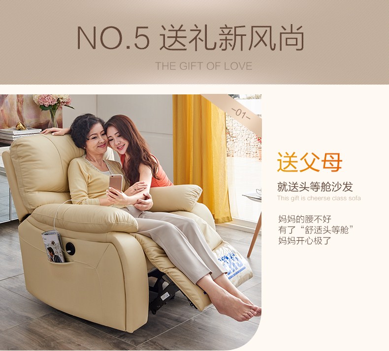 芝华仕头等舱沙发 功能单椅 现代简约进口头层牛皮真皮艺懒人沙