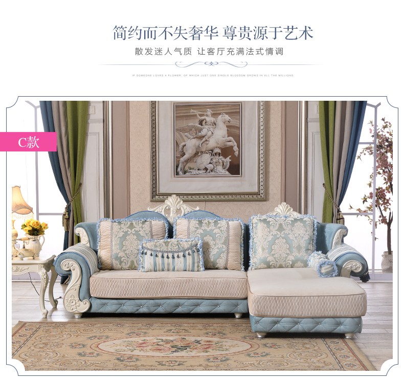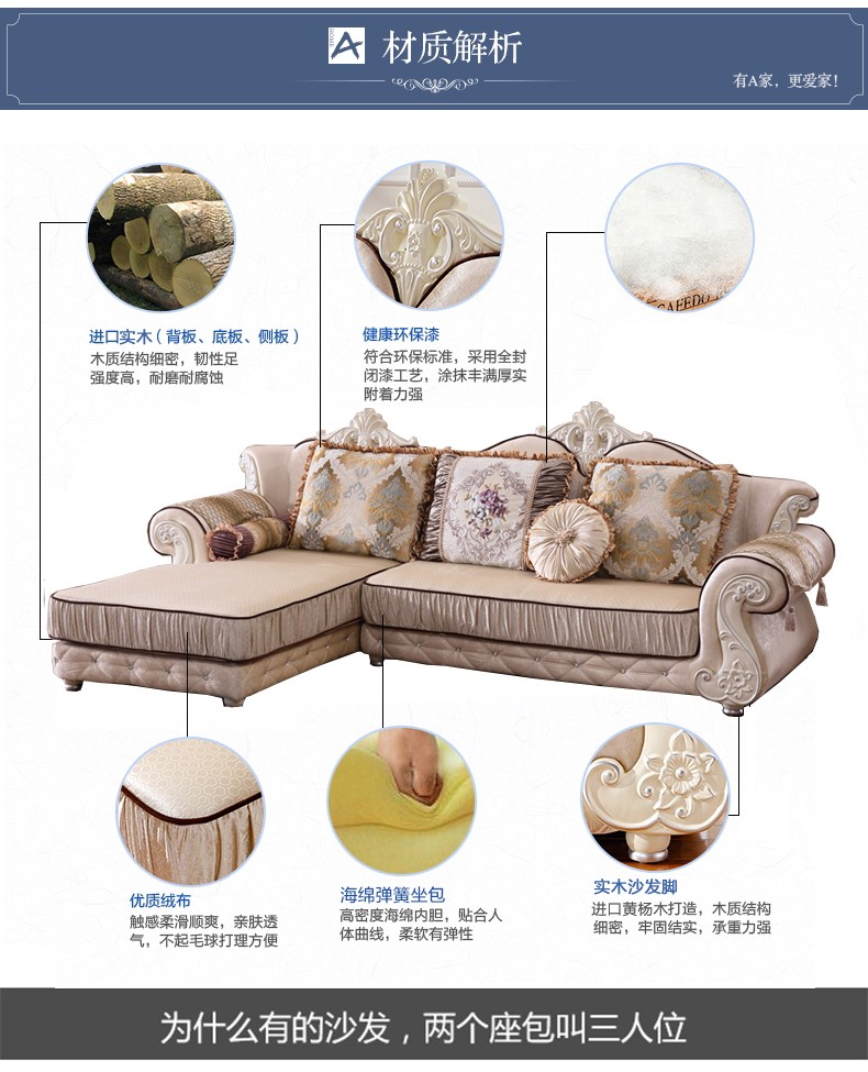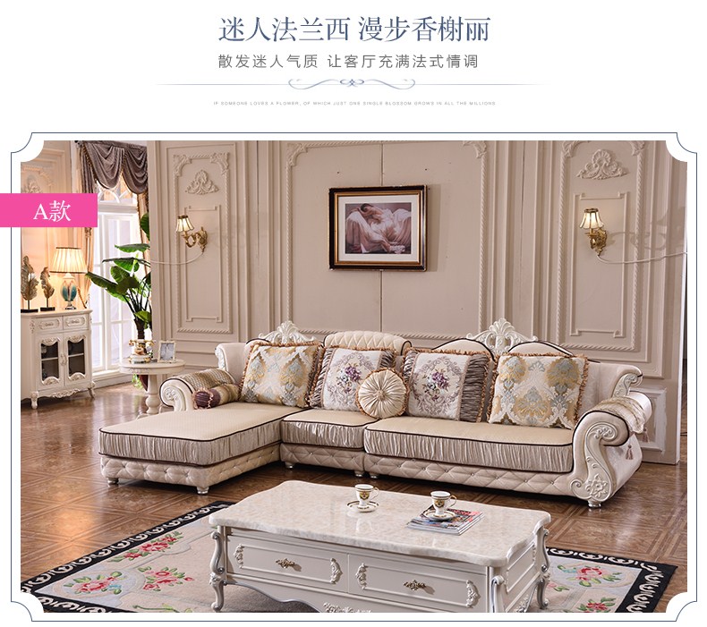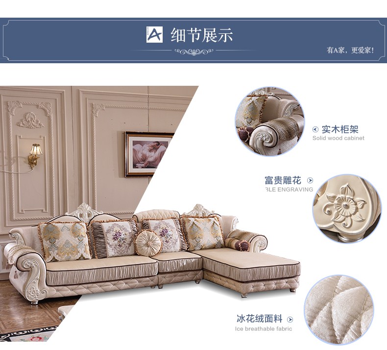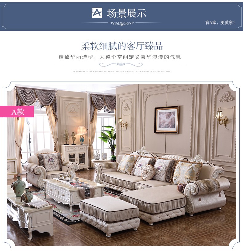 A家 家具 欧式沙发法式布艺沙发组合可拆洗实木框架沙发转角客厅