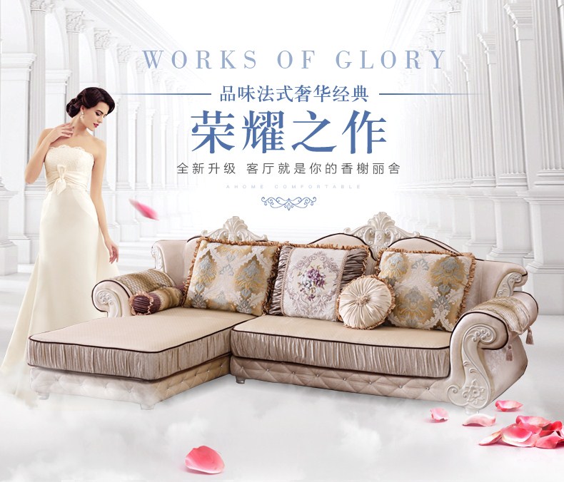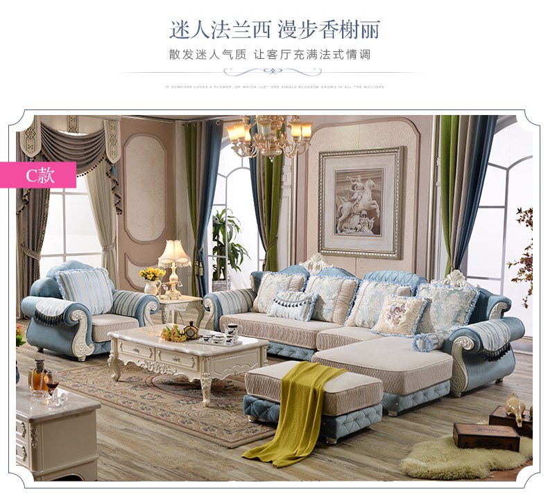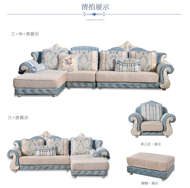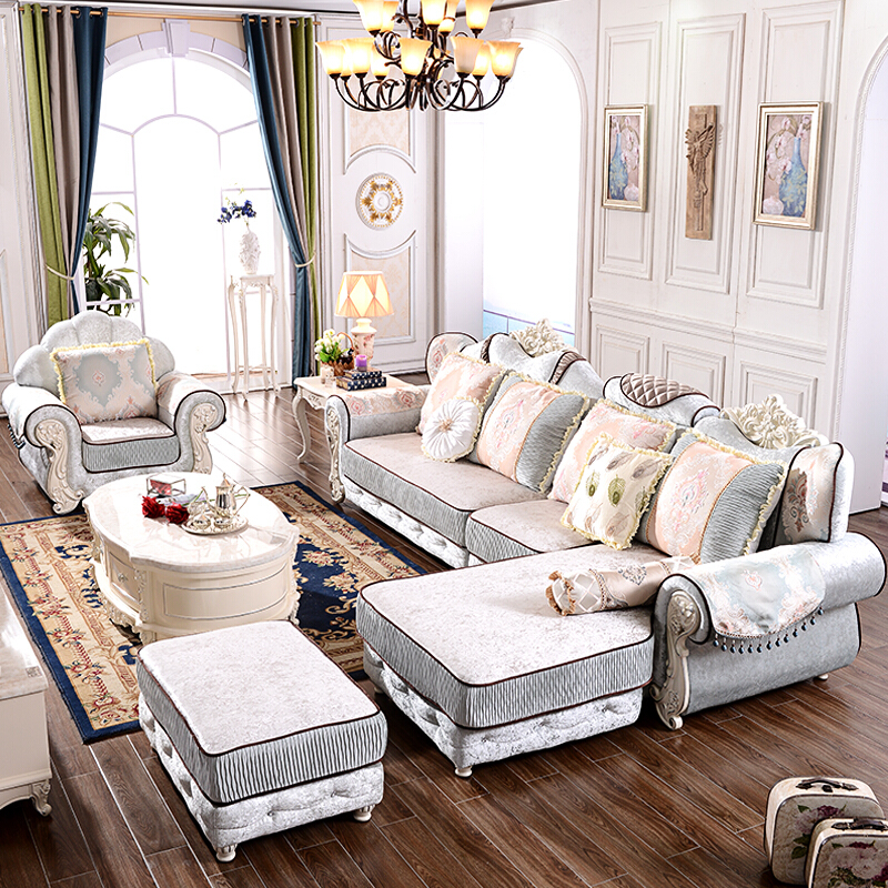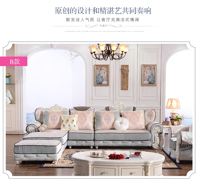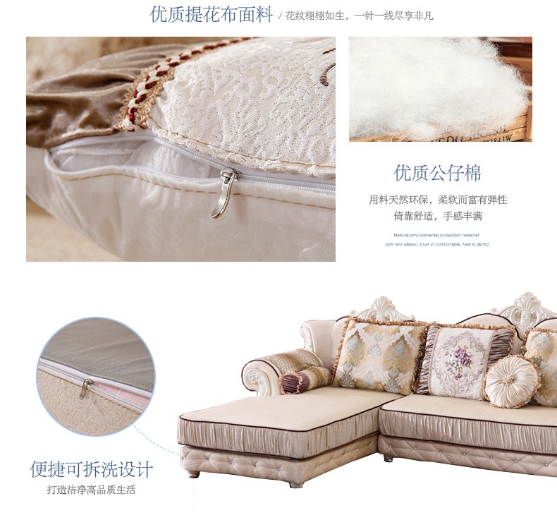 A家 家具 欧式沙发法式布艺沙发组合可拆洗实木框架沙发转角客厅