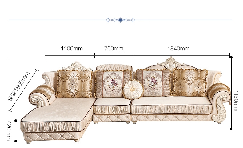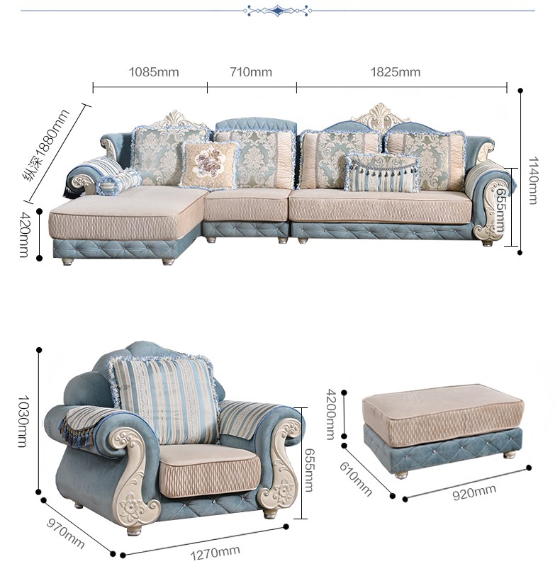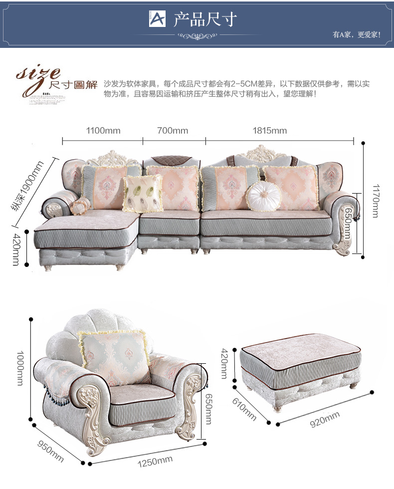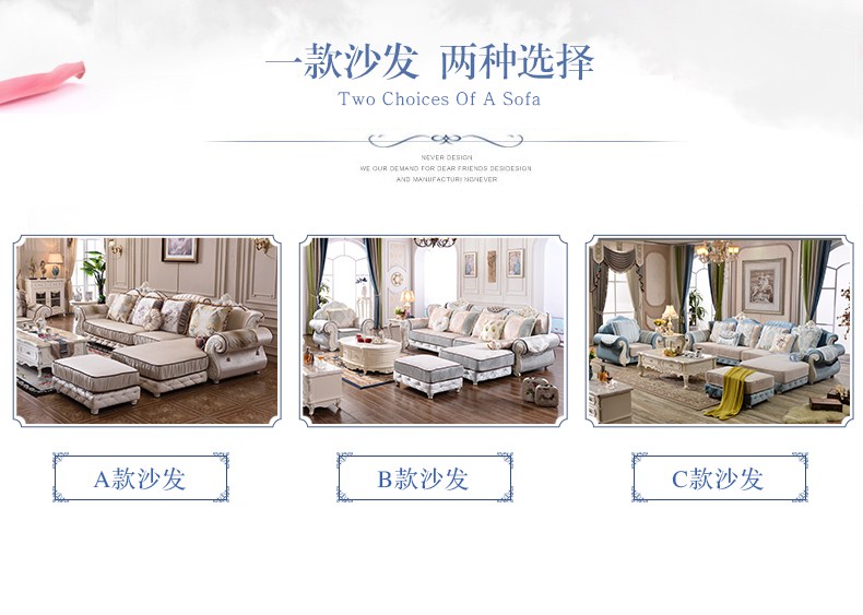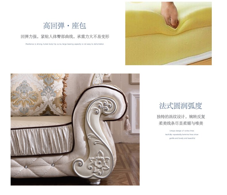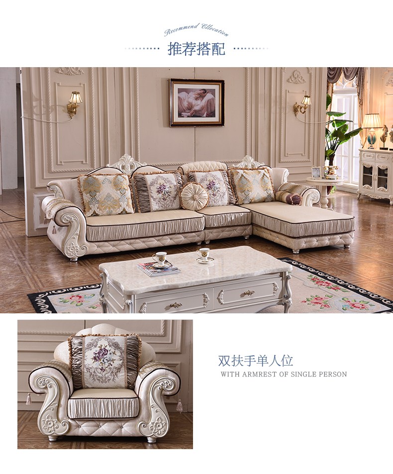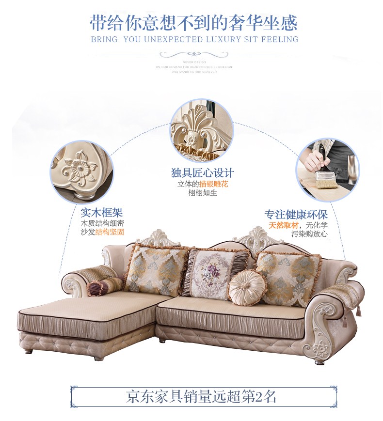 商品名称:A家 家具 欧式沙发法式布艺沙发组合可拆洗实木框架沙发转角客厅