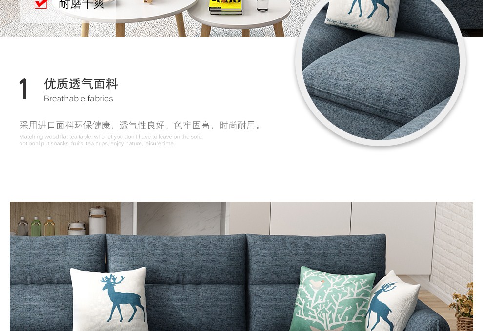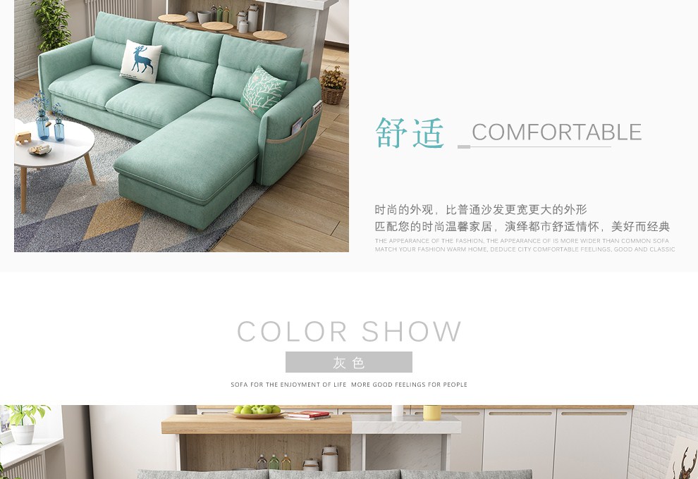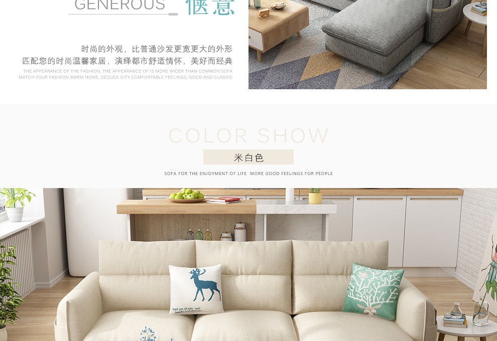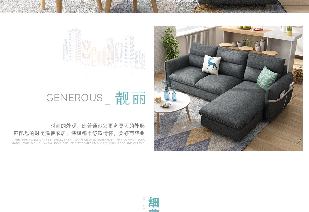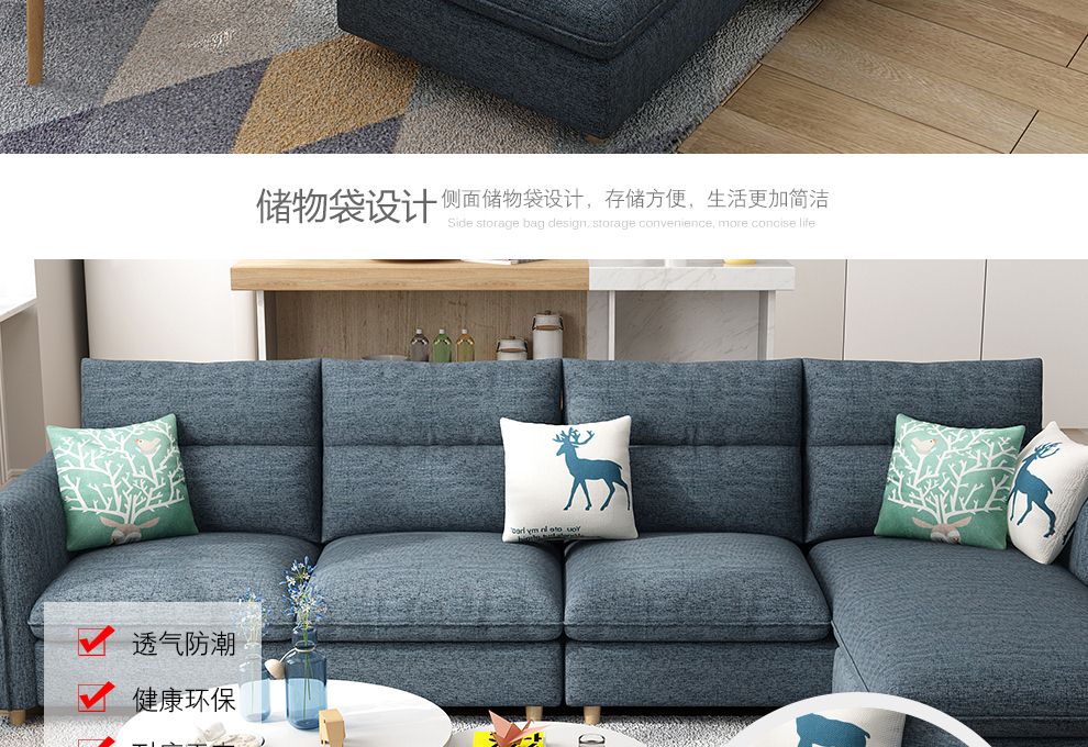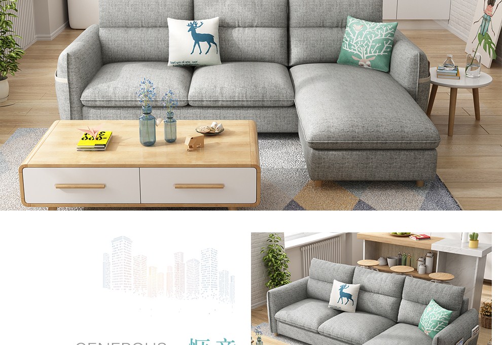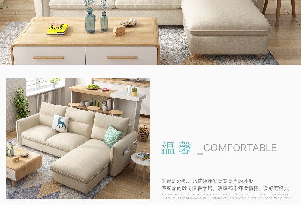 商品名称:木韵美居 沙发 布艺沙发 北欧小户型三人位沙发日式转角组合沙发