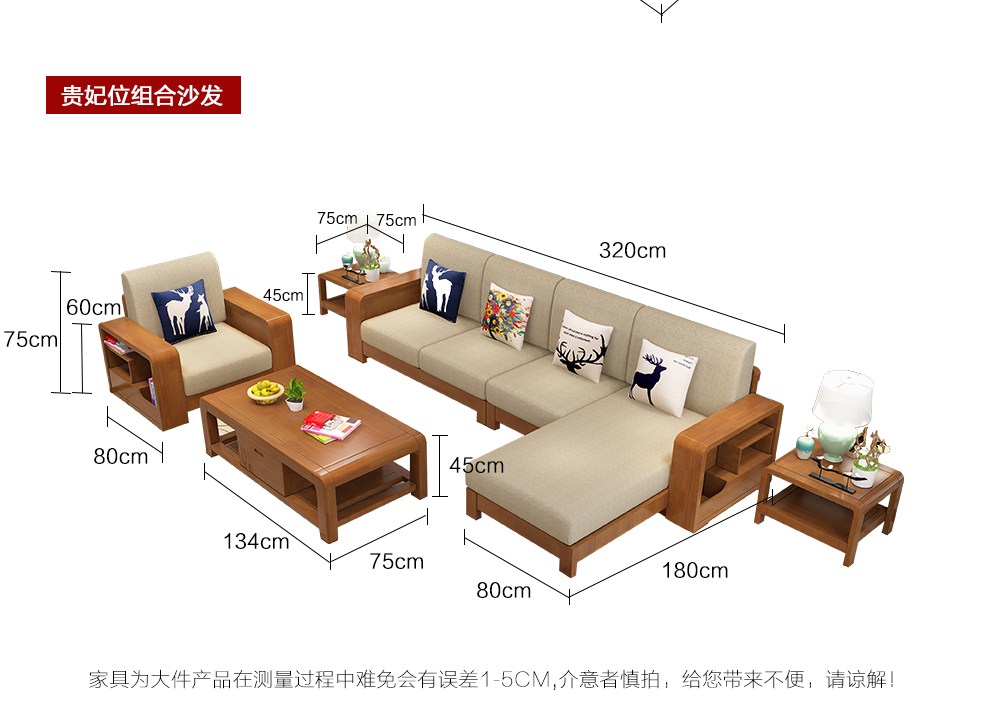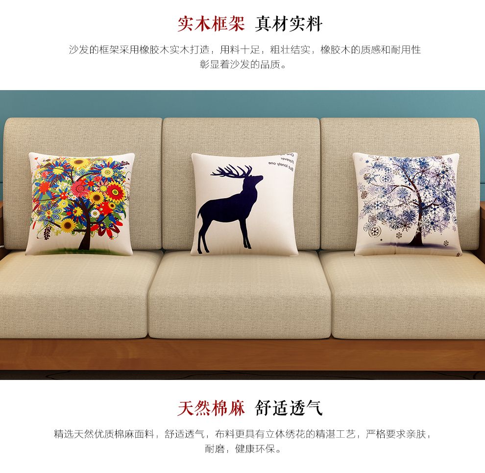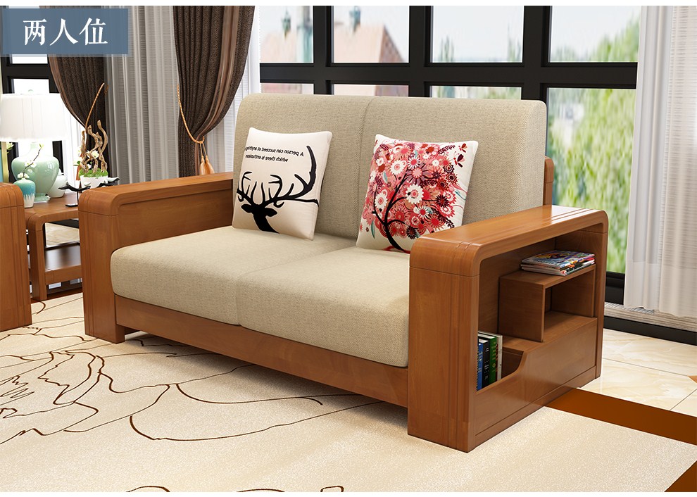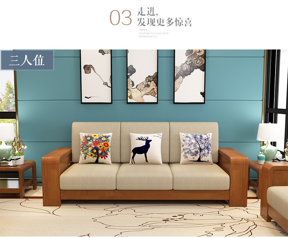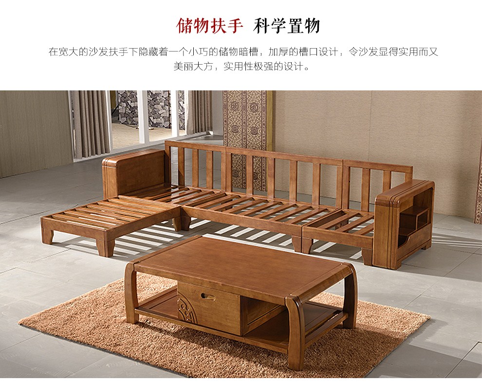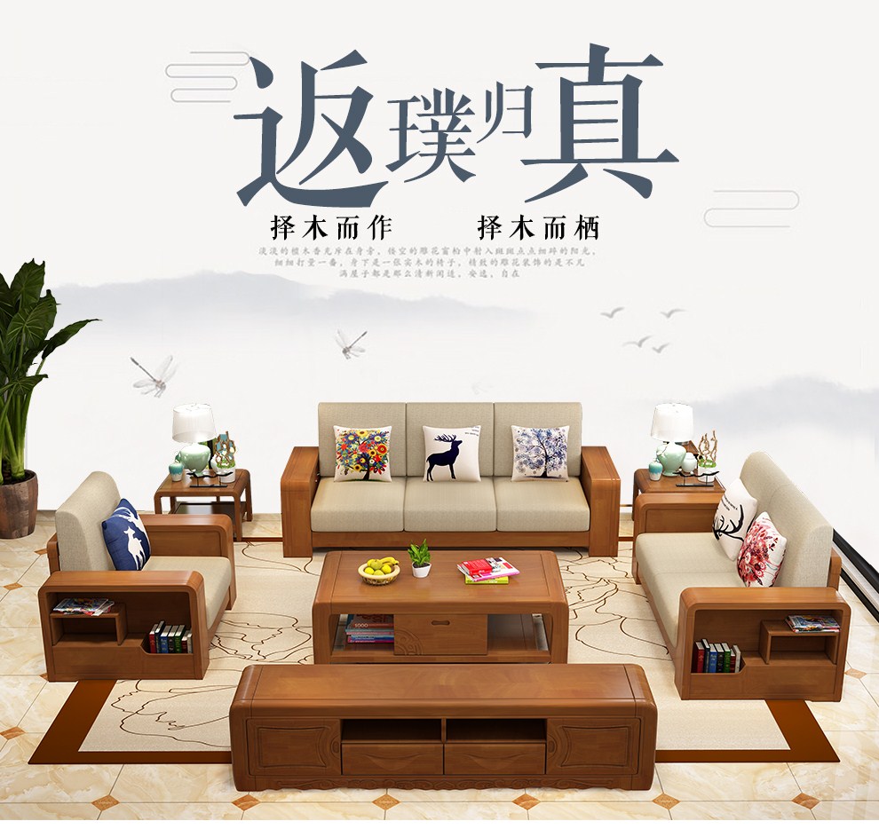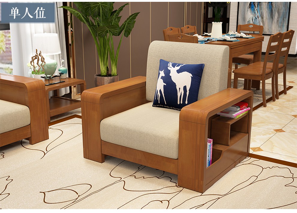 商品名称:布匠家私 全实木沙发组合现代中式 贵妃转角木质布艺沙发可拆洗