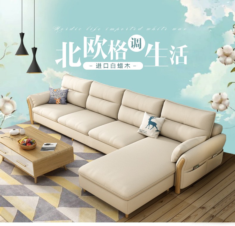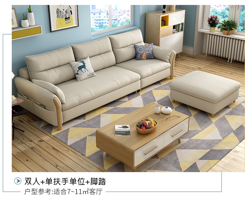 贵族海马 布艺沙发北欧现代简约懒人中小户型客厅整装家具实木组