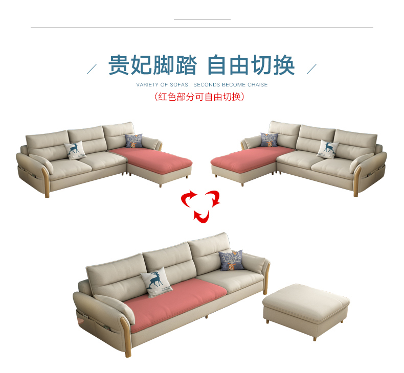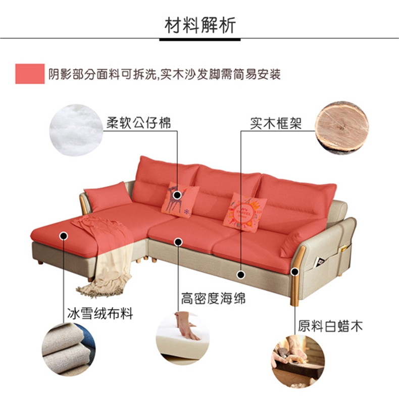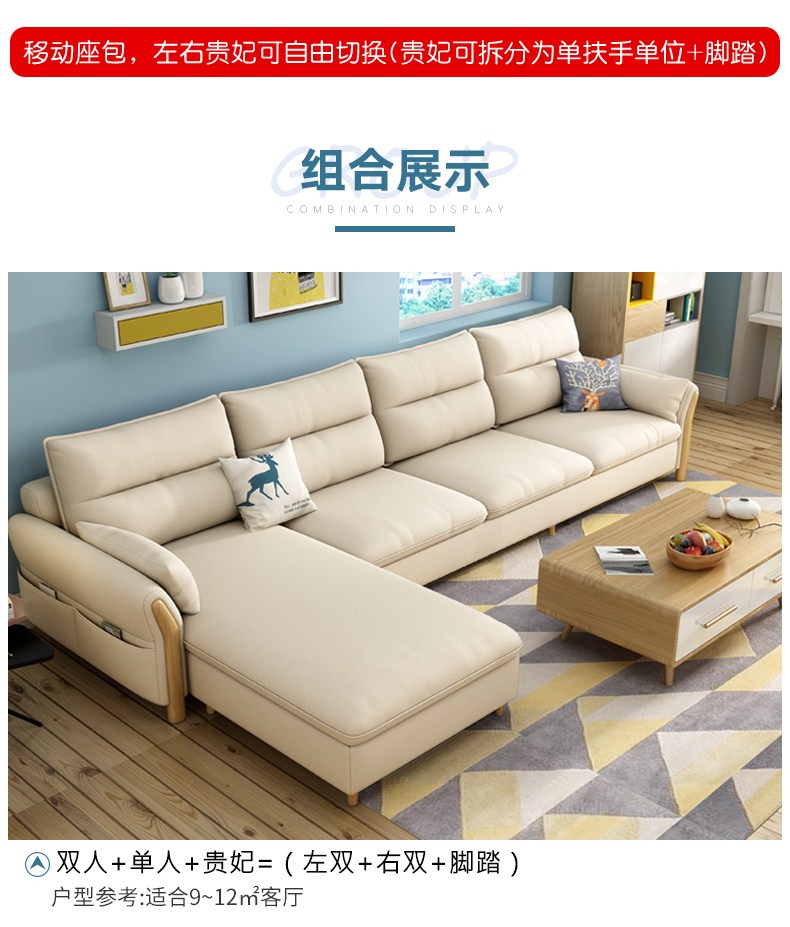 商品名称:贵族海马 布艺沙发北欧现代简约懒人中小户型客厅整装家具实木组
