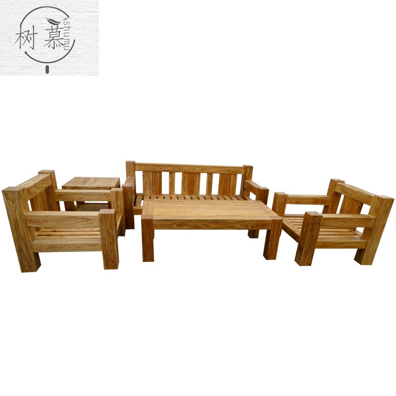 田园环保骨架沙发实木沙发组合老榆木韩式现代客厅组合沙发榆木