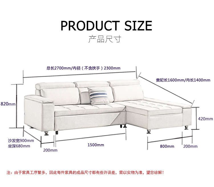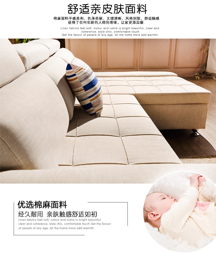 商品名称:小户型客厅可折叠沙发床2.7储物可拆洗两用抽拉多功能布艺沙发床