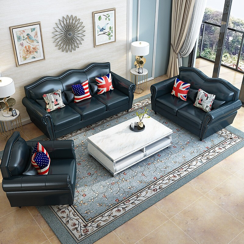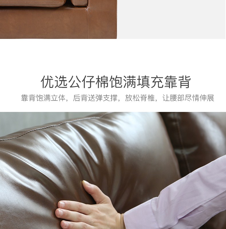 商品名称:栢菲莱斯 沙发 美式真皮沙发客厅整装组合家具双人+单人+贵妃(3