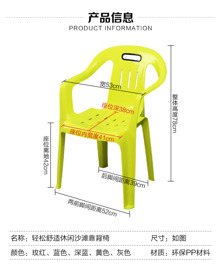 商品名称:餐椅沙滩椅子加大加厚塑料靠背椅 大排档凳子扶手休闲沙发椅白色
