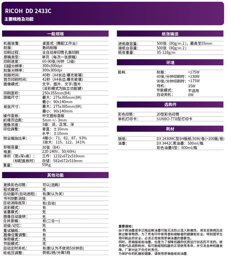 商品名称:理光(Ricoh)DD2433C数码印刷机B4印刷油印一体机油墨速印机高