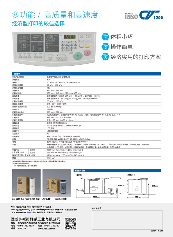 商品名称:理想 RISO CV1200 一体化速印机 免费上门安装一年保修限100万张