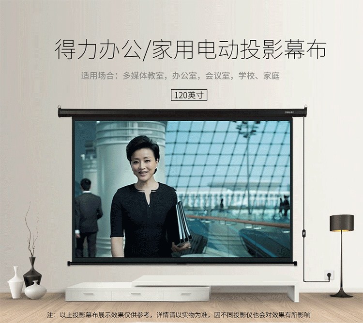 得力(deli)100英寸 16:10电动调节投影幕布投影布家用投影仪幕布