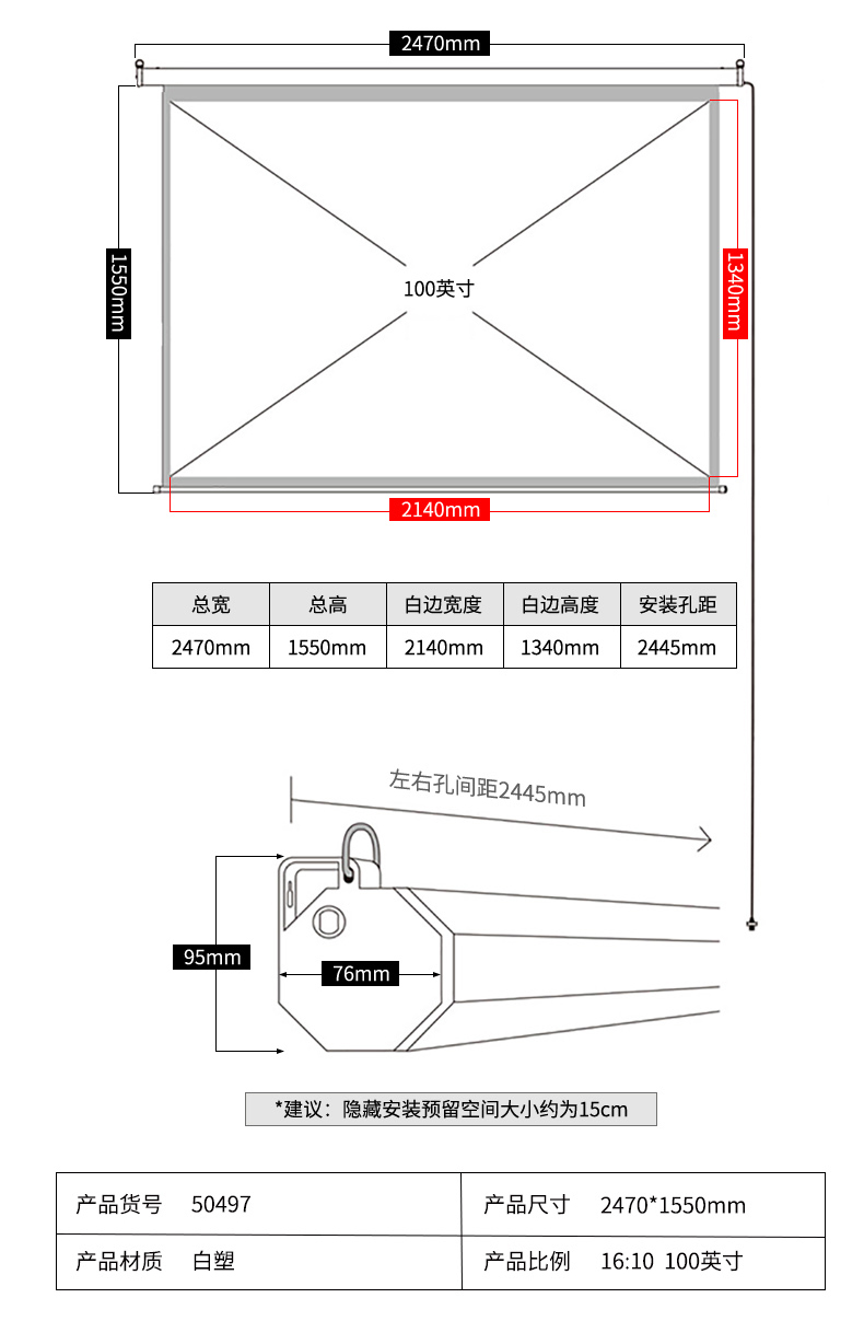 商品名称:得力(deli)100英寸 16:10电动调节投影幕布投影布家用投影仪幕布