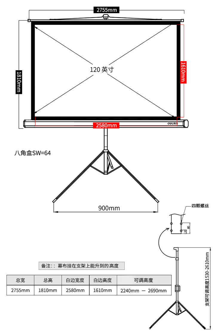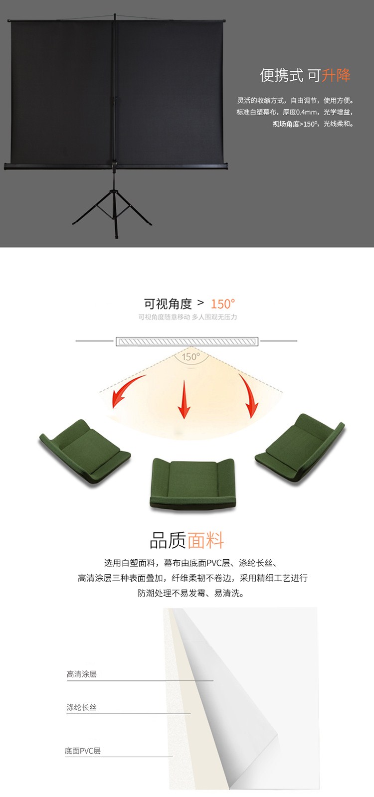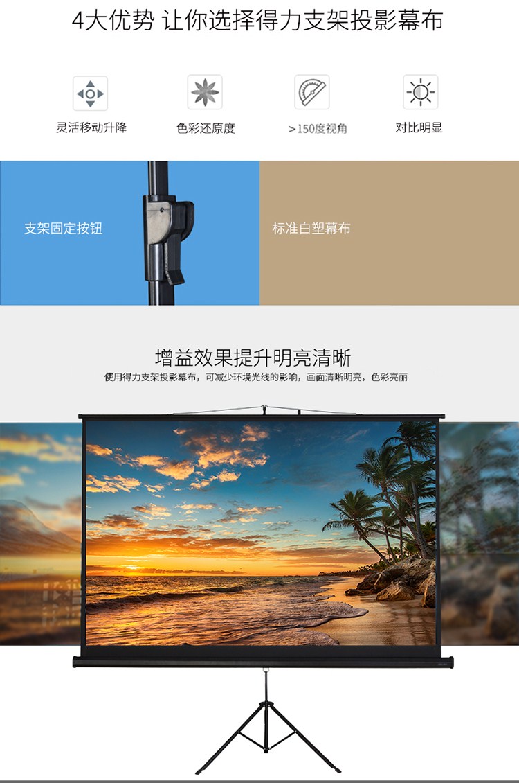商品名称:得力(deli)120英寸 16:10支架投影幕布投影布家用投影仪幕布5049
