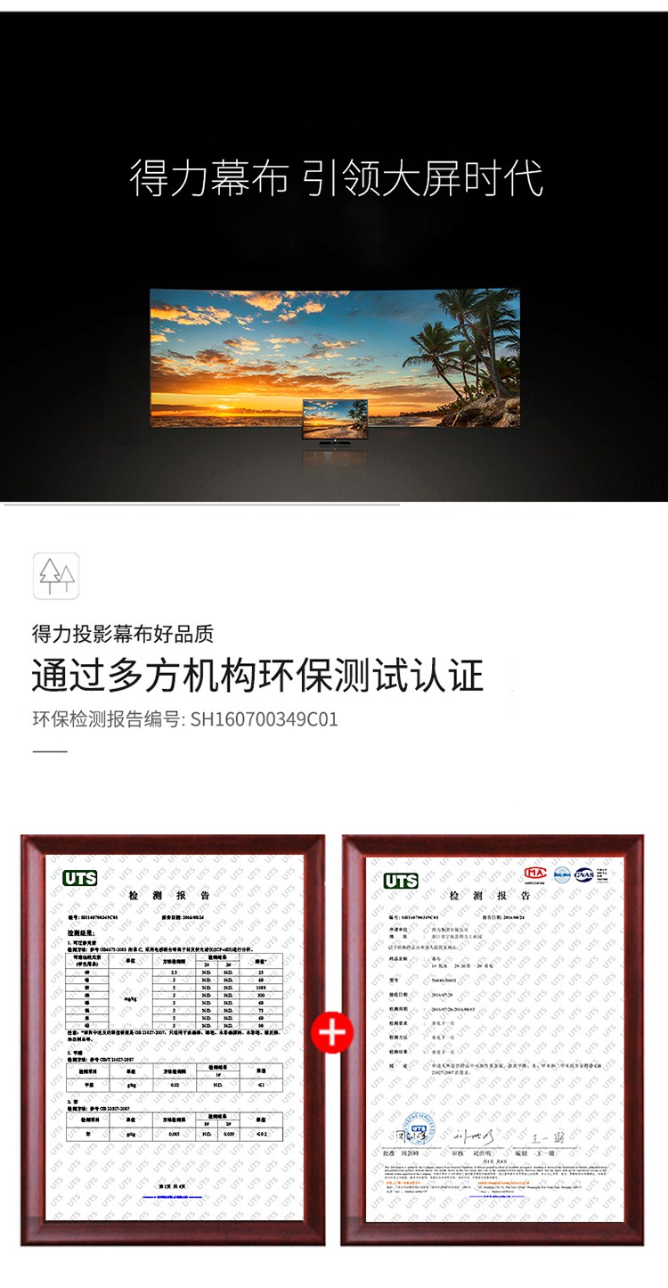 得力(deli)120英寸 16:10支架投影幕布投影布家用投影仪幕布5049