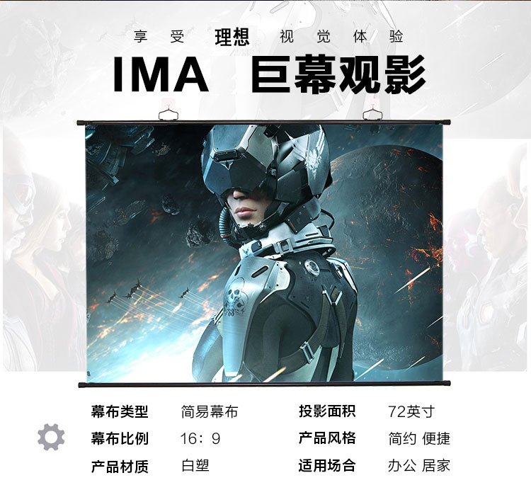 商品名称:迦观 100英寸16:9白塑简易挂壁幕 投影幕布 投影仪幕布投影机幕