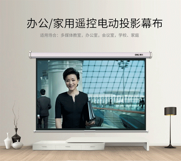 商品名称:得力(deli)100英寸 4:3遥控电动投影幕布投影布(标配遥控器)家用