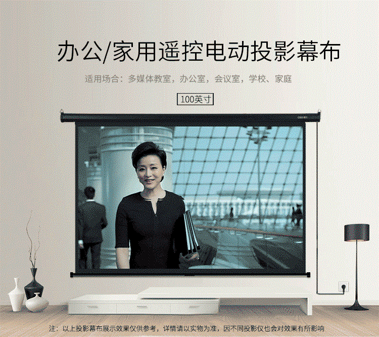 得力(deli)100英寸 16:10遥控电动投影幕布投影布(标配遥控器)家