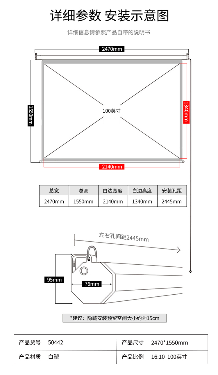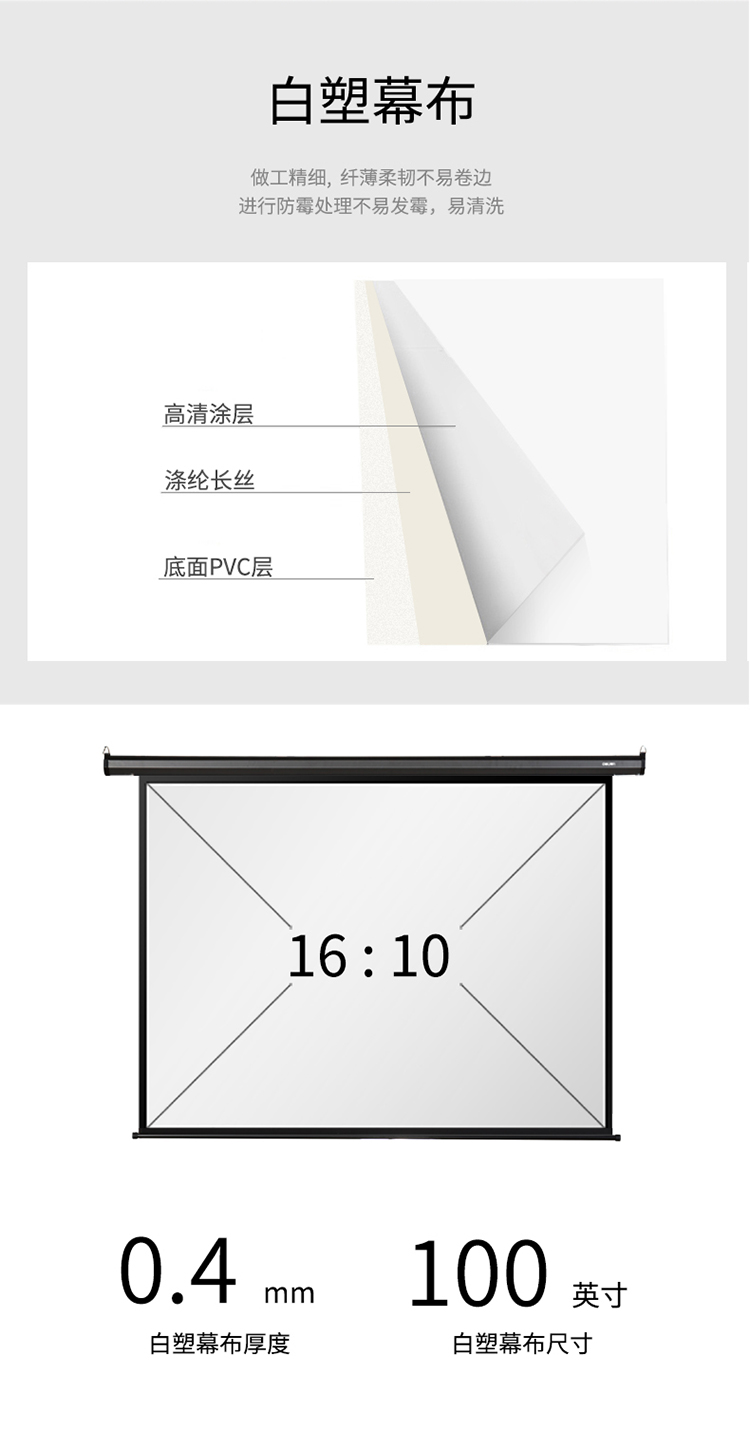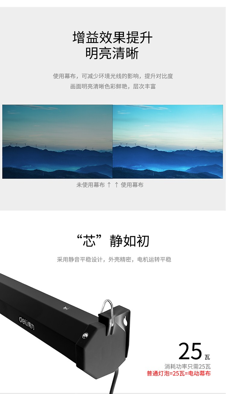 商品名称:得力(deli)100英寸 16:10遥控电动投影幕布投影布(标配遥控器)家